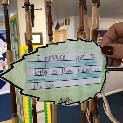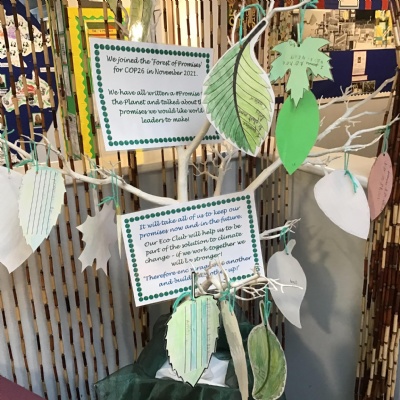 - Make a 'Forest of Promises', where every pupil in our school made a promise to help slow down climate change (eg. I will not leave the tap running when cleaning my teeth) and wrote this on a leaf shape. Some of these were then sent to the Leaders at COP 26.
