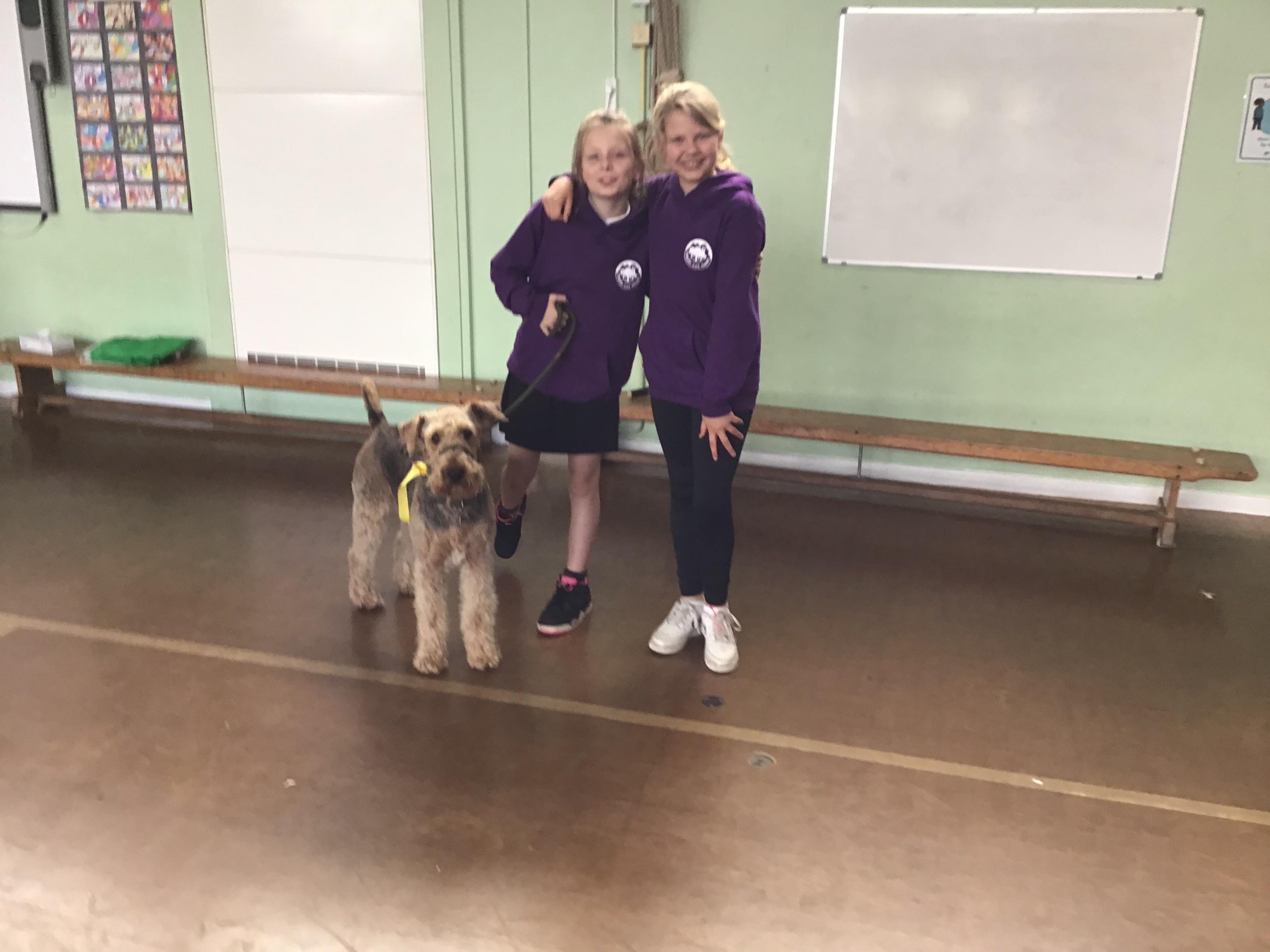Rosie, our school dog, wore blue ribbons!