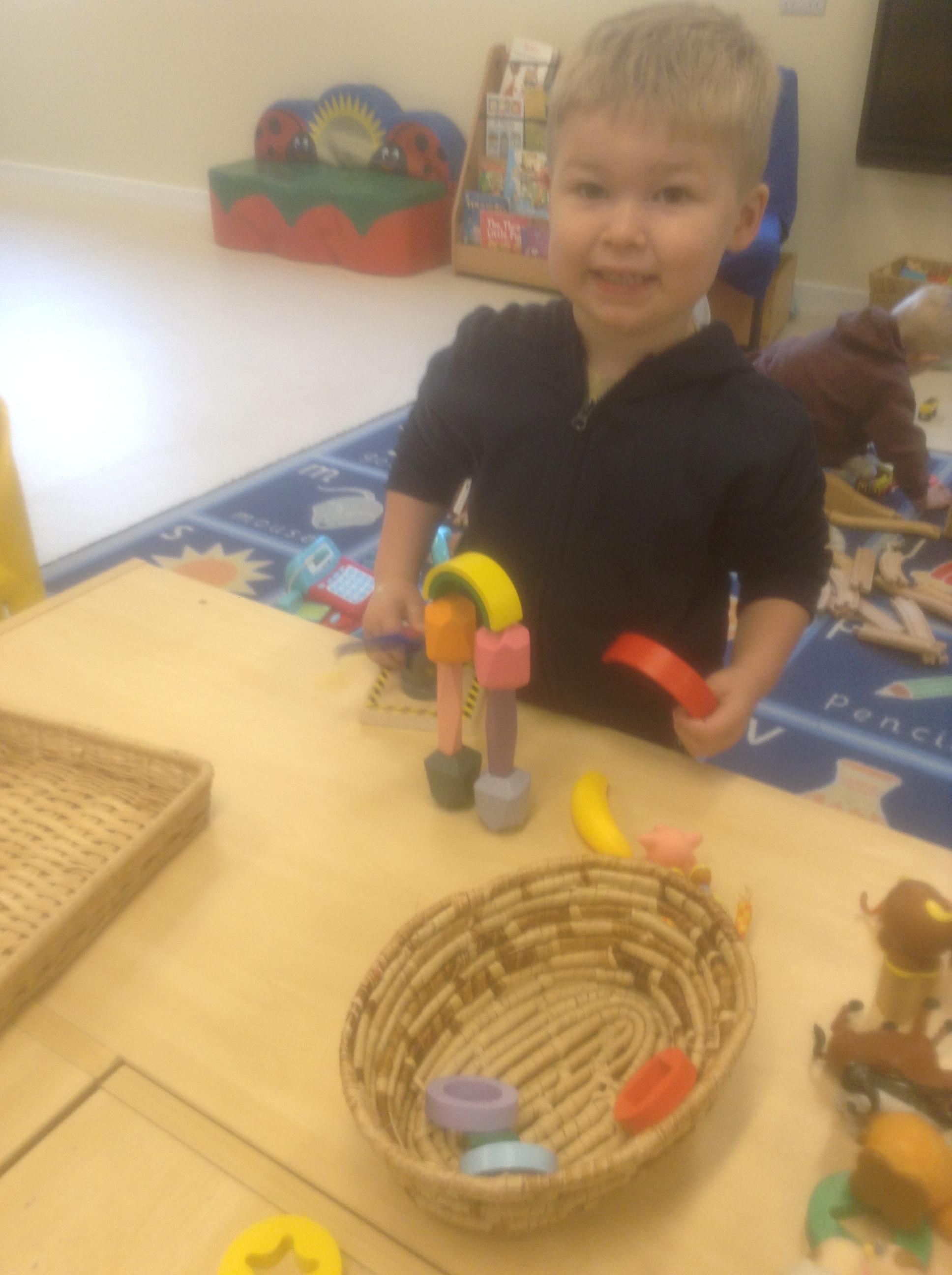 Every session we do small group work based upon phonics, maths and “talk time.” At the end of each session we share a whole class song / rhyme and listen to a story. We do physical activities daily, whether it be dancing, wake up shake up or yoga. At least once a week we do a short PE session. We carry out regular Worship times, usually a Bible story, song and prayer.